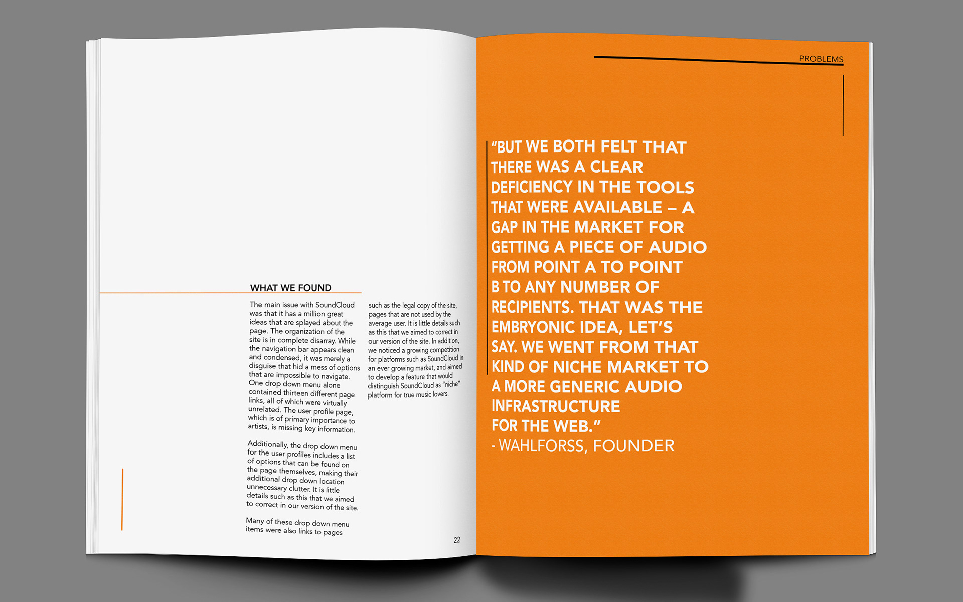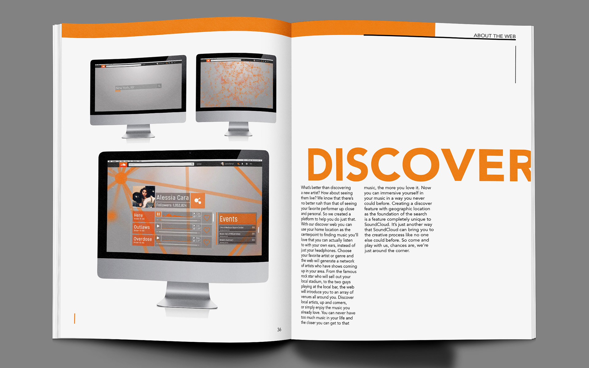 PROJECT | Analysis and restructure of Soundcloud.com including the creation of "The Web," an interface that enhances the music discovery experience | ART DIRECTOR, EDITORIAL DESIGNER